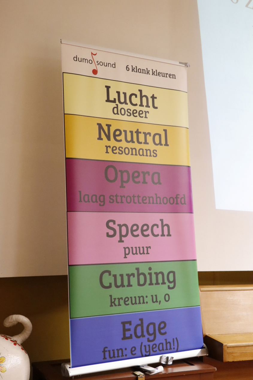 Juliette Dumoré gaf een uiteenzetting over de kleuren van de koorklank, Emiel Hoefnagel nam ons mee in een voordracht hoe je het beste je ouder wordende stem fit kunt houden. In beide workshops was ruimte ingebouwd voor het zingend meedoen.